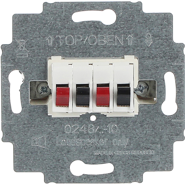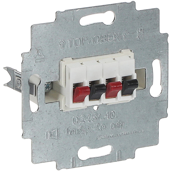 Busch Jaeger 0248/04-101 Anschlussdose für Lautsprecher passend zu Abdeckung TAE, 2x 2 Chinch-Buchsen in der Farbe reinweiß. Stereo Lautsprecher-Dose, zur Montage in handelsüblicher Unterputz- bzw. Hohlwanddose. Unterputz-Installation mit farblich gekennzeichneter Polung, für Kabel bis 10 mm² Querschnitt.