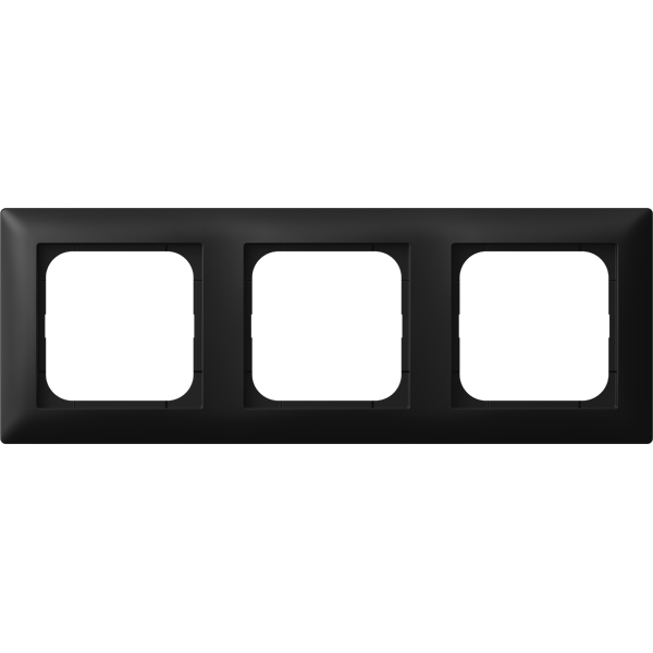Rahmen 3-fach schwarz mat Busch Jaeger 1723-915 für senkrechte oder waagerechte Montage. Rahmen passend für Busch-Schalter-Einsätze und Schaltermaterial aus dem Schalterprogramm Busch-balance SI in der Farbe schwarz mit matter Oberfläche.
