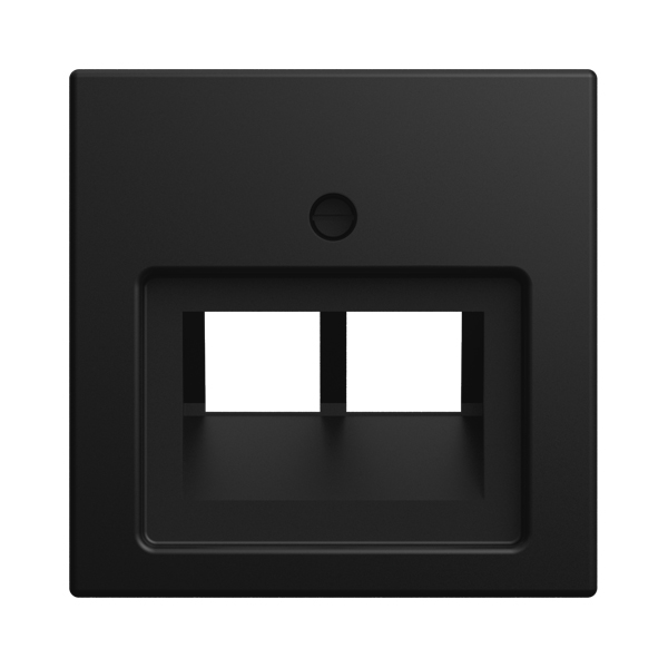 Zentralscheibe UAE 2-fach Busch-Jaeger 1803-02-915 aus dem Schalterprogramm Busch-balance SI in der Farbe schwarz matt. Zentralscheibe als Abdeckung für Datenkommunikation für UAE-Anschlussdosen. Mit Schrägauslass.
