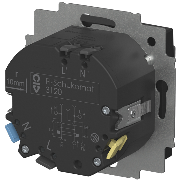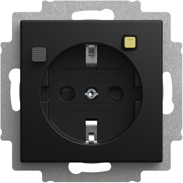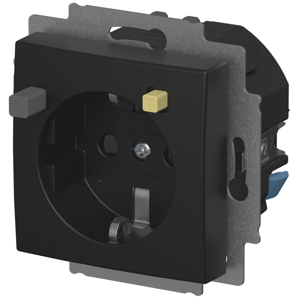 Busch-Jaeger FI-SCHUKOMAT Steckdosen-Einsatz 3120EUCB-915. Busch-balance® SI mit Fehlerstromschutzschalter und integriertem Kinderschutz, Farbe schwarz. Unterputz-Modul mit erhöhtem Berührungsschutz und integrierter Schutzfunktion für nachgeschaltete Steckdosen.