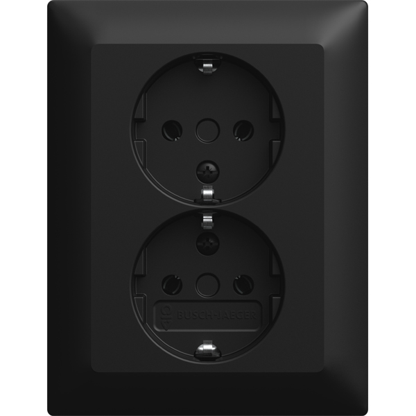 SCHUKO Doppelsteckdose 202EUJ-915 mit Komplettabdeckung Busch-Jaeger in der Farbe schwarz für die Unterputz-Montage. Passend für handelsübliche Unterputzdose. Nur Einzelmontage möglich.