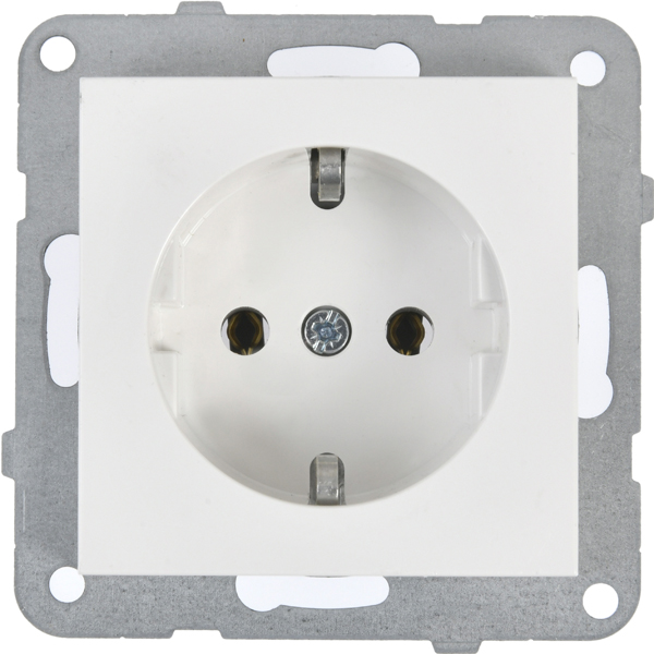 Steckdose Unterputz Einsatz für den Einsatz in der Haus- und Wohnungsinstallation für trockene Bereiche. Passend für Standard Hohlwanddosen und Unterputzdosen mit 60 mm Durchmesser. Der Anschluss erfolgt über integrierte Steckklemmen für starre Leiter bis 2,5 mm².