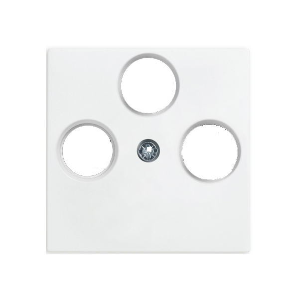 Karre Plus 55 Zentralscheibe Antenne 3-Loch für SAT-/TV-Koaxial-Antennendosen aus dem Panasonic Schalterprogramm Karre 55 Plus in der Farbe reinweiß. Die Zentralscheibe ist speziell für 3-Loch Antennendosen konzipiert und eignet sich ideal für den Einsatz in Wohn- und Gewerbeinstallationen. Sie sorgt für eine saubere, optisch ansprechende Abdeckung Ihrer Antennenanschlüsse und integriert sich harmonisch in bestehende Schalterprogramme.