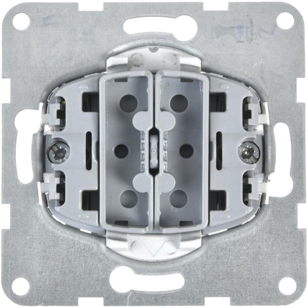 Wippschalter Einsatz Serienschalter Karre 55 mit Steckanschluss, Schalter-Einsatz Serie Unterputz für die Schaltung mit zwei voneinander unabhängigen Schaltwippen in einem Einsatz. Mit diesem lassen sich zwei Stromkreise, zum Beispiel zwei Leuchten, getrennt schalten. UP-Einsatz mit Befestigungskrallen mit Rückstellfeder für Spreizbefestigung oder Schraubbefestigung. Mit praktischen Steckklemmen für schnelle und sichere Unterputz-Installation für den Anschluß von starren Leitern bis 2,5 mm².