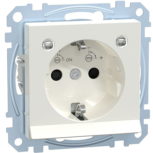 Merten MEG2304-0319 Schuko-Steckdose mit LED-Orientierungsleuchte für Unterputz, Schalterprogramm System M in der Farbe polarweiß. Schuko-Steckdose mit integriertem erhöhten Berührungsschutz gemäß VDE 0620 Teil 1.