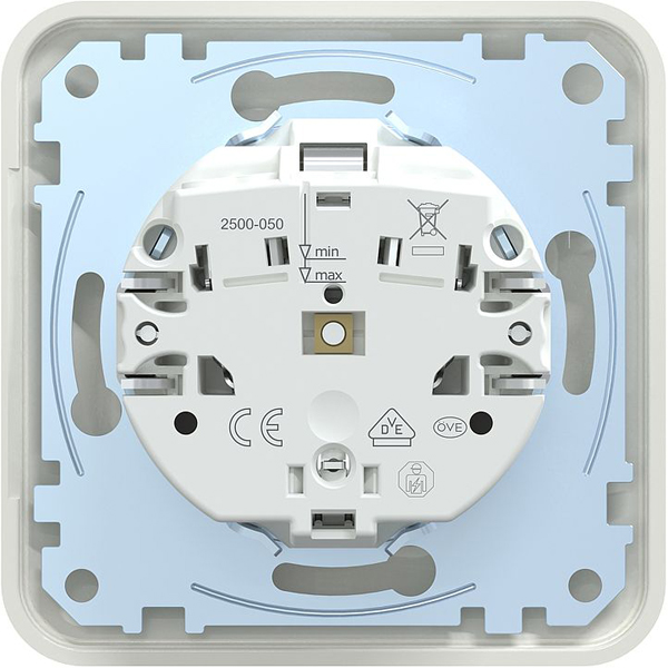 Schuko-Steckdose Merten MEG2301-1019 mit voller Abdeckplatte, Schalterprogramm System M. Eine Einzel-Steckdose mit voller Platte für die Unterputz-Installation. Nicht für Mehrfachkombination geeignet.