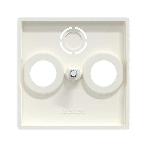 Merten Zentralplatte für Antennensteckdosen 2/3-Loch in polarweiß glänzend für Unterputz, Schalterprogramm System M. Dritte Öffnung für SAT-Buchse bei Bedarf ausbrechbar. Für Antennensteckdose wie z.B. AEG, Bosch, Fuba, Hirschmann, Kathrein, Philips, Polytron, Siemens, Wisi, Zehnder und weitere Antennendosen.